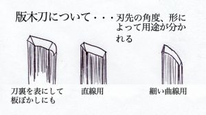 *版木刀について・・・刃先の角度、形によって用途が分かれる。