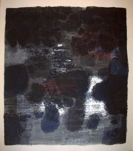⑩ ⑤の版でリキテックスマースブラックを摺る