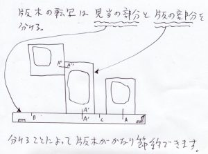 *版木の転写は見当の部分と版の部分を分ける。(以降では見当のバーが左サイドになります)