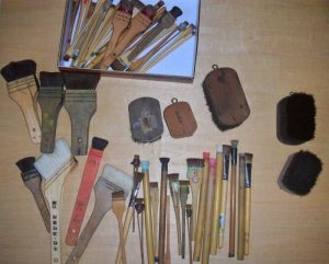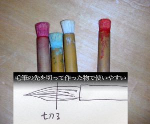 - 刷毛(ブラシ、手刷毛、油絵のブタ毛の筆ー毛筆の先を切って作ったもので使いやすい。