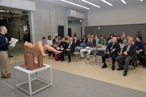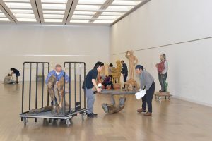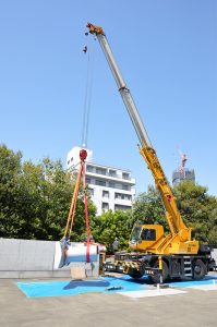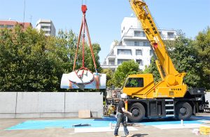 屋外陳列。重量の重い作品は大型クレーンをつかって設置します。