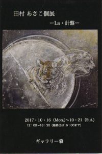 国展 > 展覧会情報 > 絵画の展示 > 田村あさこ 個展 ーLa・針盤ー 田村あさこ 個展 ーLa・針盤ー ■会期■2017年10月16日(月)〜10月21日(土) ■会場■ギャラリー菊 大阪市北区西天満4-9-2 西天満ビル1F TEL:06-6314-0907 入場時間:12:00〜18:30 ※最終日16:00まで また、19日(木)はコンサートのため17:00まで 共有: Facebook で共有するにはクリックしてください (新しいウィンドウで開きます) Facebook クリックして X で共有 (新しいウィンドウで開きます) X 2017/09/30 絵画の展示|個展, 大阪