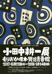 国展 > 展覧会情報 > 工芸の展示 > 小田中耕一展_もりおか啄木・賢治青春館 小田中耕一展_もりおか啄木・賢治青春館 会期:2017年10月21日(土)~2018年1月14日(日) 10:00~17:00 第2火曜日・年末年始休館 入場無料 会場:もりおか啄木・賢治青春館 〒020-0871 盛岡市中ノ橋通一丁目1-25 TEL/FAX 019-604-8900 http://www.odette.or.jp/seishunkan/ *ギャラリートーク 11月11日(土)14:00~ 2階展示ホールにて 共有: Facebook で共有するにはクリックしてください (新しいウィンドウで開きます) Facebook クリックして X で共有 (新しいウィンドウで開きます) X 2017/10/21 2017/10/21 工芸の展示|盛岡