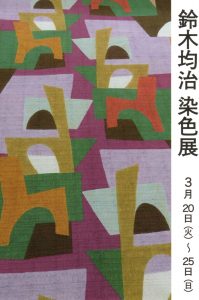 国展 > 展覧会情報 > 工芸の展示 > 鈴木均治 染色展_千疋屋ギャラリー 鈴木均治 染色展_千疋屋ギャラリー 会期:2018年3月20日(火)~3月25日(日) 10:00~18:30 (土 17:00まで・日 16:00まで) 会場:千疋屋ギャラリー 〒104-0031 東京都中央区京橋1-1-9 TEL 03-3281-0360 FAX 03-3281-0560 http://www.senbikiya.co.jp/ 共有: Facebook で共有するにはクリックしてください (新しいウィンドウで開きます) Facebook クリックして X で共有 (新しいウィンドウで開きます) X 2018/03/20 2018/03/20 工芸の展示|京橋