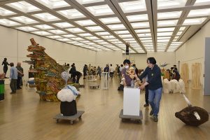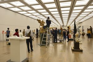 国展 > お知らせ > 彫刻部 > 第92回国展準備風景(彫刻部) 第92回国展準備風景(彫刻部) 続いて彫刻部の準備風景を紹介します。 搬入 かなり大きな作品も運ばれてきます。 搬入と共に受付で書類の手続きがあります。 搬入された作品は一時保管されます。 鑑査 様々な角度から見て検討します。 意見交換がおこなわれます。 投票はボードにマグネットを付けていきます。 陳列 屋内展示。出品者みんなで、協力して展示作業にあたります。 屋内展示。 屋内展示。 屋外展示。重量物はフォークリフトを使用します。 屋外展示。 共有: Facebook で共有するにはクリックしてください (新しいウィンドウで開きます) Facebook クリックして X で共有 (新しいウィンドウで開きます) X 2018/05/10 お知らせ, 彫刻部|