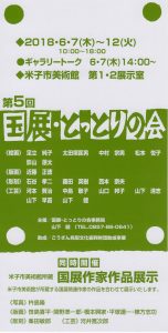 国展 > 展覧会情報 > 写真の展示 > 第5回 国展・とっとりの会_米子市美術館 第5回 国展・とっとりの会_米子市美術館 会期:2018年6月7日(木)〜12日(火) 10:00〜18:00 ★ギャラリートーク/7日(木)14:00〜 会場:米子市美術館 第1・2展示室 〒683-0822 鳥取市米子市中町12番地 主催/国展・とっとりの会 事務局 山下健 ( TEL 0857-86-0641 ) 共有: Facebook で共有するにはクリックしてください (新しいウィンドウで開きます) Facebook クリックして X で共有 (新しいウィンドウで開きます) X 2018/05/26 2018/05/28 写真の展示, 工芸の展示, 彫刻の展示, 版画の展示, 絵画の展示|米子