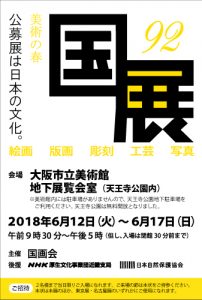 国展 > 展覧会情報 > 写真の展示 > 第92回国展大阪展_大阪市立美術館 ※終了しました 第92回国展大阪展_大阪市立美術館 ※終了しました ■会 期■ 2018年6月12日(火)~6月17日(日) 9:30~17:00(入場は閉館30分前まで) ■入場料■ 一般800円、高大生600円、中学生以下無料、65歳以上300円 ■会 場■ 大阪市立美術館 地下展覧会室 〒543-0063 大阪府大阪市天王寺区茶臼山町1-82(天王寺公園内) TEL:06-6771-4874 共有: Facebook で共有するにはクリックしてください (新しいウィンドウで開きます) Facebook クリックして X で共有 (新しいウィンドウで開きます) X 2018/06/12 2018/06/29 写真の展示, 巡回展, 工芸の展示, 彫刻の展示, 版画の展示, 絵画の展示|