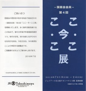 国展 > 展覧会情報 > 絵画の展示 > ここ・今・ここ展_ジェイアール名古屋タカシマヤ 美術画廊 ここ・今・ここ展_ジェイアール名古屋タカシマヤ 美術画廊 ー国画会会員ー 第4回 ■会期■2018年7月18日(水)〜7月24日(火) ■会場■ジェイアール名古屋タカシマヤ10階 美術画廊 名古屋市中村区名駅1丁目1−4 TEL:052-566-1101 入場時間:10:00〜20:00 ※最終日は午後4時閉場 共有: Facebook で共有するにはクリックしてください (新しいウィンドウで開きます) Facebook クリックして X で共有 (新しいウィンドウで開きます) X 2018/07/18 2018/07/18 絵画の展示|グループ展, 会員展, 名古屋