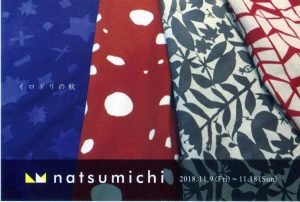 国展 > 展覧会情報 > 工芸の展示 > natsumichi ーイロドリの秋ー_楽庵 natsumichi ーイロドリの秋ー_楽庵 会期:2018年11月9日(金)~11月18日(日) 11:00~18:00(水・日は17:00まで 火曜休廊) 会場:楽庵 〒135-0024 東京都江東区清澄3-3-23 TEL 03-5621-4777 http://www.kiyosumi-01.com/ 大木夏子と北澤道子の展覧会です。 共有: Facebook で共有するにはクリックしてください (新しいウィンドウで開きます) Facebook クリックして X で共有 (新しいウィンドウで開きます) X 2018/11/09 2018/11/09 工芸の展示|清澄白河