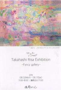 国展 > 展覧会情報 > 絵画の展示 > Takahashi Risa Exhibition_画廊るたん Takahashi Risa Exhibition_画廊るたん -Fancy gallery- ■会期■2019年8月12日(月)〜8月17日(土) ■会場■画廊るたん 東京都中央区銀座6-13-7 新保ビル2F TEL 03-3541-0522 入場時間:11:00〜18:30(最終日は17:00) 共有: Facebook で共有するにはクリックしてください (新しいウィンドウで開きます) Facebook クリックして X で共有 (新しいウィンドウで開きます) X 2019/08/12 2019/08/12 絵画の展示|個展, 銀座