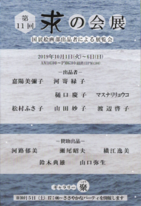 国展 > 展覧会情報 > 絵画の展示 > 第11回 求の会展_ギャラリー聚 第11回 求の会展_ギャラリー聚 ■会期■2019年10月1日(火)〜10月6日(日) ■会場■ギャラリー聚 愛知県名古屋市中区栄3丁目21−1 TEL:052-263-3161 入場時間:10:00〜18:00 ※最終日16:00まで 共有: Facebook で共有するにはクリックしてください (新しいウィンドウで開きます) Facebook クリックして X で共有 (新しいウィンドウで開きます) X 2019/10/01 2019/10/01 絵画の展示|グループ展, 名古屋
