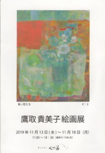 国展 > 展覧会情報 > 絵画の展示 > 鷹取貴美子 絵画展_ギャルリーくさ笛 鷹取貴美子 絵画展_ギャルリーくさ笛 ■会期■2019年11月13日(水)〜11月18日(月・祝) ■会場■ギャルリーくさ笛 名古屋中区栄 3-27-22 kuze bldg.3F TEL:052-262-2335 入場時間:11:00〜18:30 ※最終日17:00まで 共有: Facebook で共有するにはクリックしてください (新しいウィンドウで開きます) Facebook クリックして X で共有 (新しいウィンドウで開きます) X 2019/11/13 2019/11/13 絵画の展示|個展, 名古屋