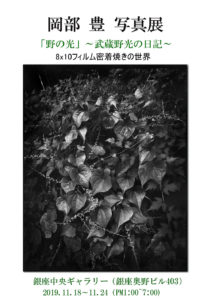 国展 > 展覧会情報 > 写真の展示 > 岡部豊 写真展 岡部豊 写真展 岡部豊写真展 銀座中央ギャラリー(銀座奥野ビル403) 2019.11.18~11.24(PM1:00~7:00 最終日6:00) 共有: Facebook で共有するにはクリックしてください (新しいウィンドウで開きます) Facebook クリックして X で共有 (新しいウィンドウで開きます) X 2019/11/03 写真の展示|