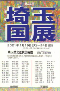 国展 > 展覧会情報 > 写真の展示 > 第44回埼玉国展_埼玉県立近代美術館 ※中止 第44回埼玉国展_埼玉県立近代美術館 ※中止 ※緊急事態宣言の発令により、中止とさせていただきます ■会期■2021年1月19日(火)〜1月24日(日) ■会場■埼玉県立近代美術館 地下一般展示室1 埼玉県さいたま市浦和区常盤9-30-1 TEL:048-824-0111 入場時間:10:00〜17:30 ※最終日16:30まで 共有: Facebook で共有するにはクリックしてください (新しいウィンドウで開きます) Facebook クリックして X で共有 (新しいウィンドウで開きます) X 2021/01/19 2021/01/19 写真の展示, 絵画の展示|グループ展, 埼玉