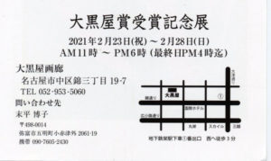 国展 > 展覧会情報 > 版画の展示 > 大黒屋賞受賞記念展_大黒屋画廊 大黒屋賞受賞記念展_大黒屋画廊 会期;2021年2月23日(祝)〜2月28日(日) AM11時〜PM6時(最終日PM4時まで) 会場;名古屋市中区錦三丁目19−7 TEL 052-953-5060 問い合わせ先;末平博子 090−7605−2430 共有: Facebook で共有するにはクリックしてください (新しいウィンドウで開きます) Facebook クリックして X で共有 (新しいウィンドウで開きます) X 2021/02/23 2021/02/23 展覧会情報, 版画の展示|受賞者展, 名古屋