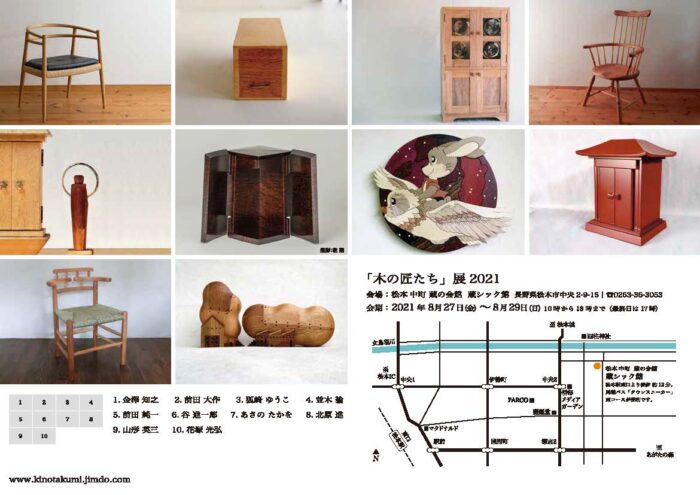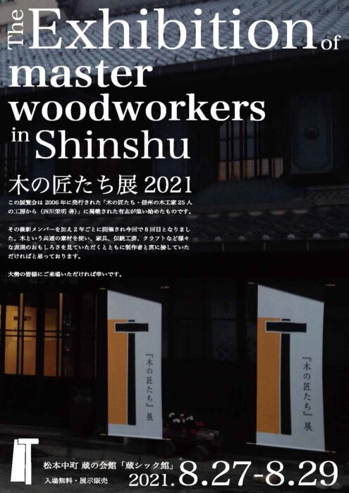 国展 > 展覧会情報 > 工芸の展示 > 「木の匠たち」展2021_松本 「木の匠たち」展2021_松本 会期:2021年8月27日(金)〜29日(日) 10:00〜18:00(最終日は17時) 会場:松本 中町 蔵の会館 「蔵シック館」 長野県松本市中央2−9−15 TEL 0263-36-3053 会員 谷進一郎さん 北原進さん が参加されています。 共有: Facebook で共有するにはクリックしてください (新しいウィンドウで開きます) Facebook クリックして X で共有 (新しいウィンドウで開きます) X 2021/08/03 2021/08/04 展覧会情報, 工芸の展示|松本