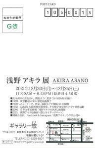 国展 > 展覧会情報 > 絵画の展示 > 浅野アキラ展_ギャラリー惣 浅野アキラ展_ギャラリー惣 ■会期■2021年12月20日(月)〜12月25日(圡) ■会場■ギャラリー惣 東京都中央区銀座7-11-6 徳島新聞ビル3F Tel:03-6228-5507 11:OOAM〜6:30PM(最終日4:30PM迄) 共有: Facebook で共有するにはクリックしてください (新しいウィンドウで開きます) Facebook クリックして X で共有 (新しいウィンドウで開きます) X 2021/12/20 2021/12/20 絵画の展示|ギャラリー惣, 浅野アキラ, 絵画