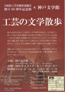 国展 > 展覧会情報 > 工芸の展示 > 工芸の文学散歩_神戸文学館 工芸の文学散歩_神戸文学館 文学からインスピレーションを得た工芸作品 織 会員 山本和子さん 織 準会員 境朋子さんが出品します。 会期:2022年6月2日(木)~19日(日) 平日 10:00~18:00 土日祝 9:00~17:00 休館日 毎週水曜日 入場無料 会場:神戸文学館 神戸市灘区王子町3丁目1番2号 TEL 078-882-2028 共有: Facebook で共有するにはクリックしてください (新しいウィンドウで開きます) Facebook クリックして X で共有 (新しいウィンドウで開きます) X 2022/06/02 2022/06/02 工芸の展示|兵庫, 神戸