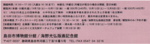 国展 > 展覧会情報 > 版画の展示 > 青木晴美木版画展_島田市博物館分館 青木晴美木版画展_島田市博物館分館 企画展 青木晴美木版画展ー色と形の向こう 作家のページへ 共有: Facebook で共有するにはクリックしてください (新しいウィンドウで開きます) Facebook クリックして X で共有 (新しいウィンドウで開きます) X 2024/09/07 2024/09/07 展覧会情報, 版画の展示, 美術館・博物館企画展|個展, 静岡-島田