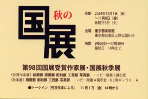 国展 > お知らせ > 第97回国展受賞作家展・国展秋季展 開催(版画部) 第97回国展受賞作家展・国展秋季展 開催(版画部) 第97回国展受賞作家展・国展秋季展 開催 共有: Facebook で共有するにはクリックしてください (新しいウィンドウで開きます) Facebook クリックして X で共有 (新しいウィンドウで開きます) X 2024/11/01 2024/11/01 お知らせ|