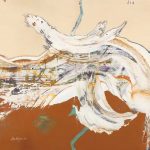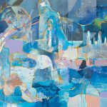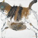 今回、栄えある賞と新会員推挙を賜り、大きな喜びです。国展に出品を始めて15回目。その間地元山形、東京の本展やグループ展で熱心に御指導下さった皆様に深く感謝しております。東日本大震災2011年に国展出品を再開。コロナ禍2021年95回展は審査終了後の翌日美術館閉鎖。その時が初めての受賞。「ミュウ」と名づけた形で動きやスピード感ある画面を造り、今を生きる自分の気持ちを表現していきたいです。