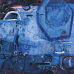 私くし船乗海上生活50年。国画第65回展初入選後毎年出品。昨年は会友賞を受賞し今年です。私くし第64回最初に出品した作品が落選。上野東京都美術館行き見て東京では、まともな作品では入選できないと、第一印象で帰り其の後いろいろな素材を使用し作品に向いました。5年前より銹たトタン板を使用しています。鉄銹のあの色に惚れ込んで、あの色は絵具ではなかなか出せないし形が良いし、もう少し向って見たいと思っています。頑張ります。此の年でまだ船乗です。