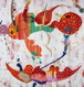 この度はこのような賞をいただき、大変光栄に存じます。この作品では、和紙をコラージュして背景をつくりました。和紙は貼り付けてみるまでどんな色あいになるかわからないところが厄介であり、同時に面白いと感じながら、制作しています。